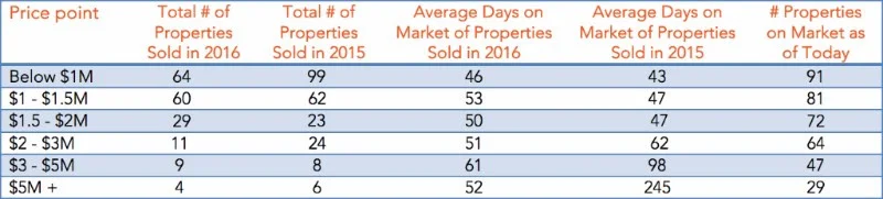 The median sale price for single family homes in August was $1,200,000, a 10% increase from last year at the end of summer, and an even more impressive 26% increase from the beginning of 2016