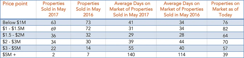 Over the last year, we saw a 3.2% price increase, with the number of single family homes increasing from 221 to 225; not as large of an increase as we've been seeing, but still an accurate reflection of a productive month year over year. The luxury areas of Ross, Tiburon, and Sausalito each saw positive price growth in May; 3.3%, 22%, and 27% increases respectively. The areas of Mill Valley, Novato, and San Rafael are the usual top producing towns in Marin, each seeing over 30 homes sold in both May 2016 and May 2017.