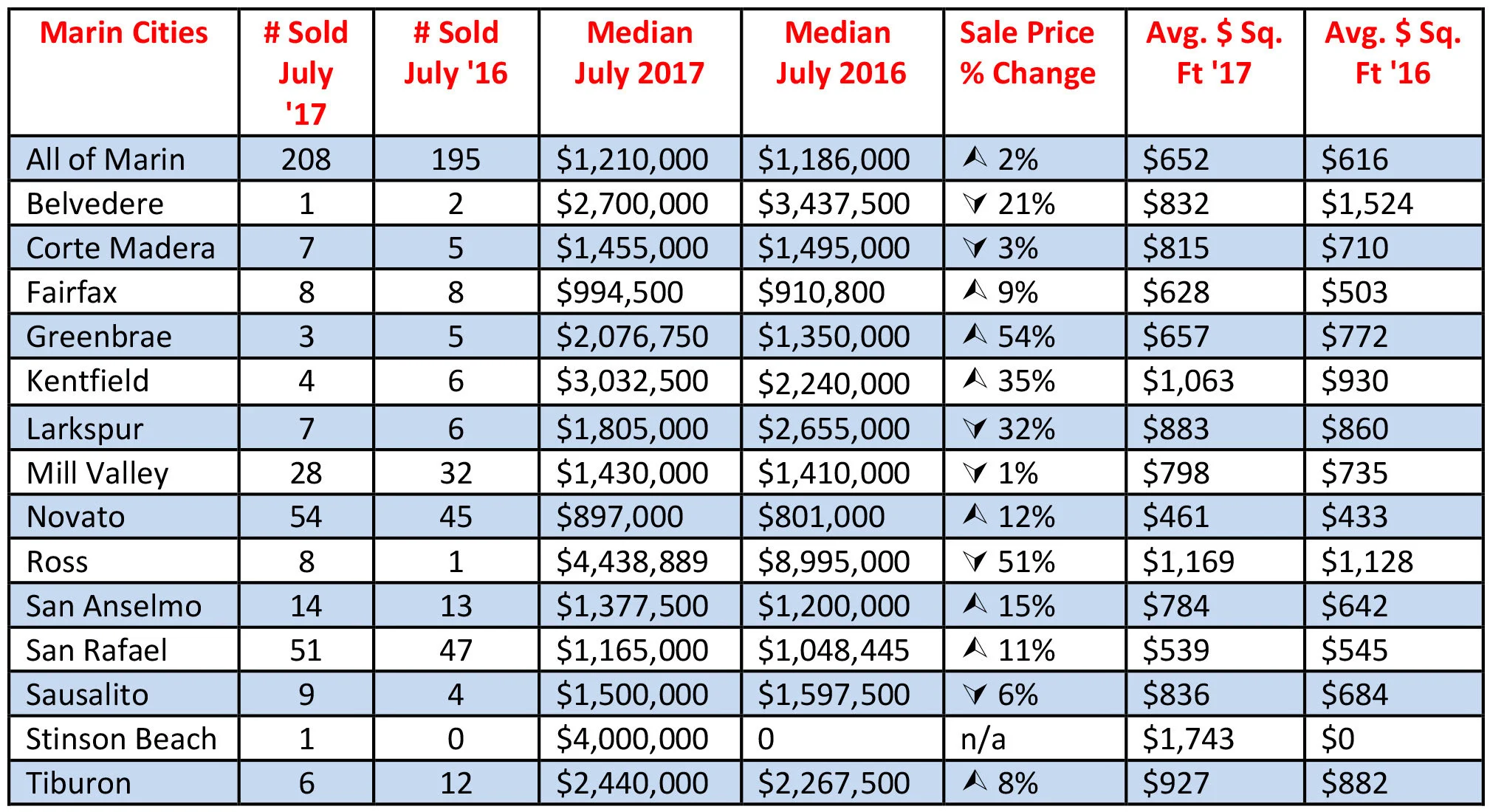 The themes for our August Marin County report usually reflect on how fast the summer went, how we're all trying to eke out a few more vacation days before Labor Day, back to school shopping and anticipation of the market gearing back up again. Not much has changed this year, only Summer has been anything but quiet. New inventory and what was left over from this past Spring, seemed to slip easily into escrow keeping the number of deals buoyant this past month (208 vs. 195 same time last year), but with prices rising just a tad (Marin median at $1,210,000 vs. $1,186,000)!